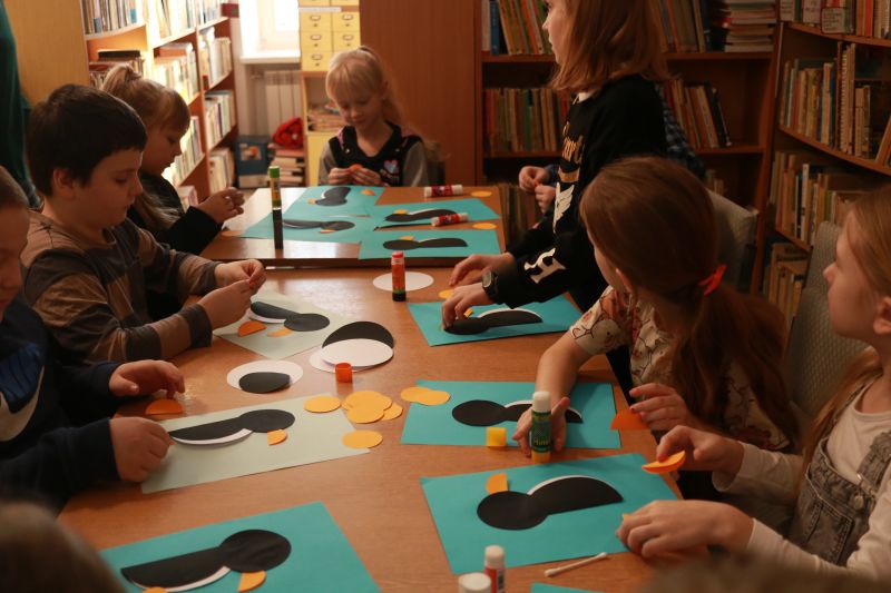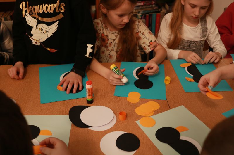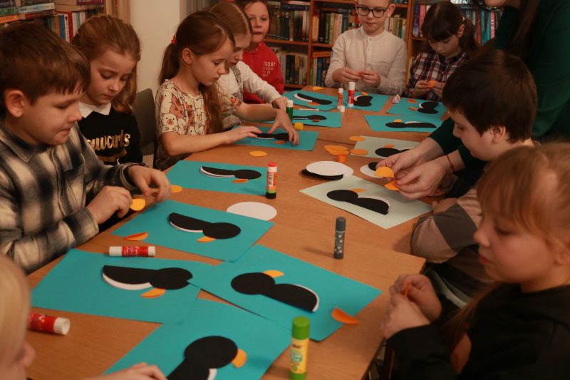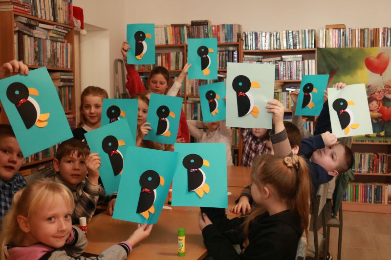 Siarczysty mróz sprowadził do biblioteki wesołe pingwiny.