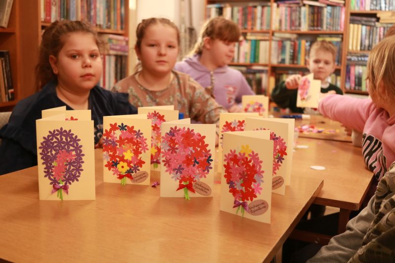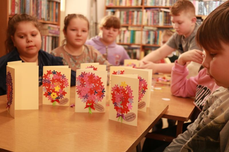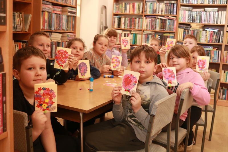 W okresie przedświątecznym tradycją jest, że wysyła się kartki wielkanocne oraz życzenia.Zajęcia świetlicowe w bibliotece stały się okazją aby własnoręcznie zrobić kartki z symbolami i motywami świat.